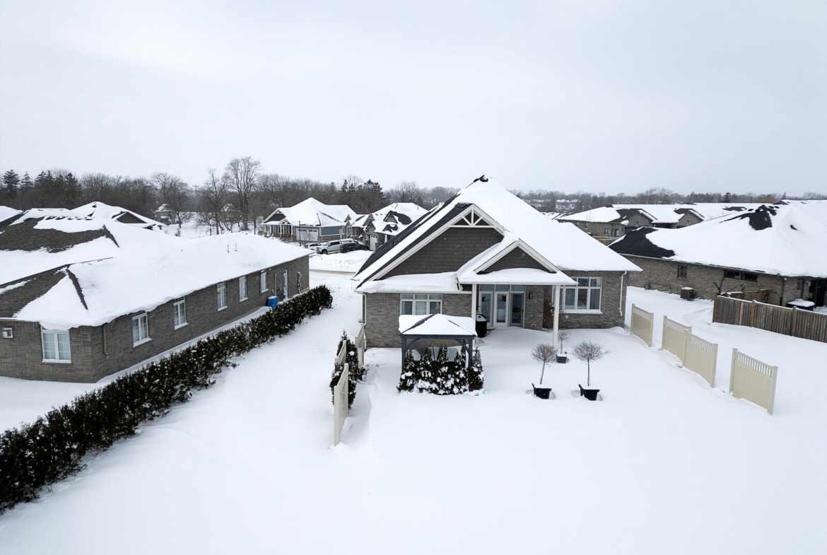Tucked away on a quiet cul-de-sac, this executive bungalow is a rare find. Built in 2018 by Bickell Homes, it rests on a generous pie-shaped lot just under half an acre, offering an impressive 4,519 sq. ft. of finished living space—2,411 sq. ft. on the main floor plus a fully finished 2,108 sq. ft. lower level with in-law suite potential.