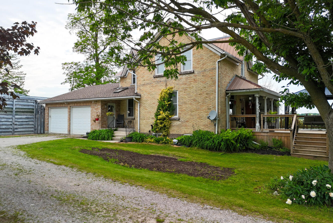 Welcome to this classic yellow brick century farmhouse nestled on a generous 121 x 239 lot, offering exceptional privacy and rural charm. This carpet-free home features 3 bedrooms and 2 full bathrooms, including a 4-piece bath on the upper level and a 3-piece bath on the main level. The heart of the home is the kitchen, complete with maple cabinets, maple flooring, a warm wood ceiling, gas stove, dishwasher, and fridge all included. The adjoining dining room leads to a versatile office currently used as a bedroom. The main floor also includes a cozy living room with maple flooring and a convenient laundry room (washer and electric dryer included, with gas hookup available). Enjoy the spacious double + garage with interior access to the laundry room. Two freezers in the garage are included. A unique walk-down entry from the garage leads to a partially finished basement featuring skylights, a rec room, propane heat, sump pump. Upstairs offers 3 bright bedrooms, all with maple flooring, and a full 4-piece bath. Additional updates and features include a new garage roof (2014), a drilled well with a new pressure tank (2024), and a septic system pumped in 2022. The front deck and gazebo were added in 2021 for outdoor enjoyment. Outdoors, the property includes a 40′ x 16′ drive-thru shed (built in 2021) and a unique curved-roof shed currently used as a workshop. Enjoy fibre optic internet (Quadro), mature trees, and quiet country living just a short drive from town. If you’re looking for space, character, and country charm, this home is a must-see!
