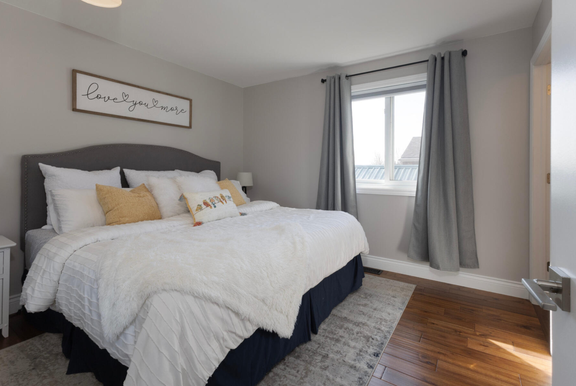 | Move right into this beautifully renovated, carpet-free home sits on a spacious corner lot, offering over 2,100 sq ft of total living space and exceptional versatility for today’s lifestyle. The main level has been thoughtfully updated, featuring a modern kitchen with new cabinetry, quartz countertops, porcelain tile flooring, and included appliances. The adjoining dining area showcases matching tile flooring and a new window, while the bright living room offers updated flooring and plenty of natural light. The primary bedroom includes a generous closet and a stylish 3-piece ensuite with in-floor heating, quartz counters, and a coni marble shower. Two additional bedrooms and a fully updated 3-piece bathroom with similar high-end finishes complete the main floor. All interior doors have been replaced for a fresh, cohesive feel. The fully finished lower level provides excellent additional living space, including a large family room with new flooring, two versatile bonus rooms (windows do not meet egress for bedroom use), and a brand new 4-piece bathroom. The laundry room includes a washer and dryer (2022), and the utility area features a workbench. This level offers great potential for an in-law suite or multi-generational living. Major updates include a new furnace (2022), owned water softener (2022), owned hot water tank, water filtration system, and a sump pump with flow control alarm. The roof was replaced in 2025, and central vacuum is also included. Outside, enjoy a two-storey deck with new top boards and a large yard with plenty of room to relax or entertain. The former pool has been removed, with the original circle still visible. Blinds, curtains, and rods are all included. With inside entry from the garage and countless upgrades throughout, this move-in ready home offers incredible value and room to grow. |